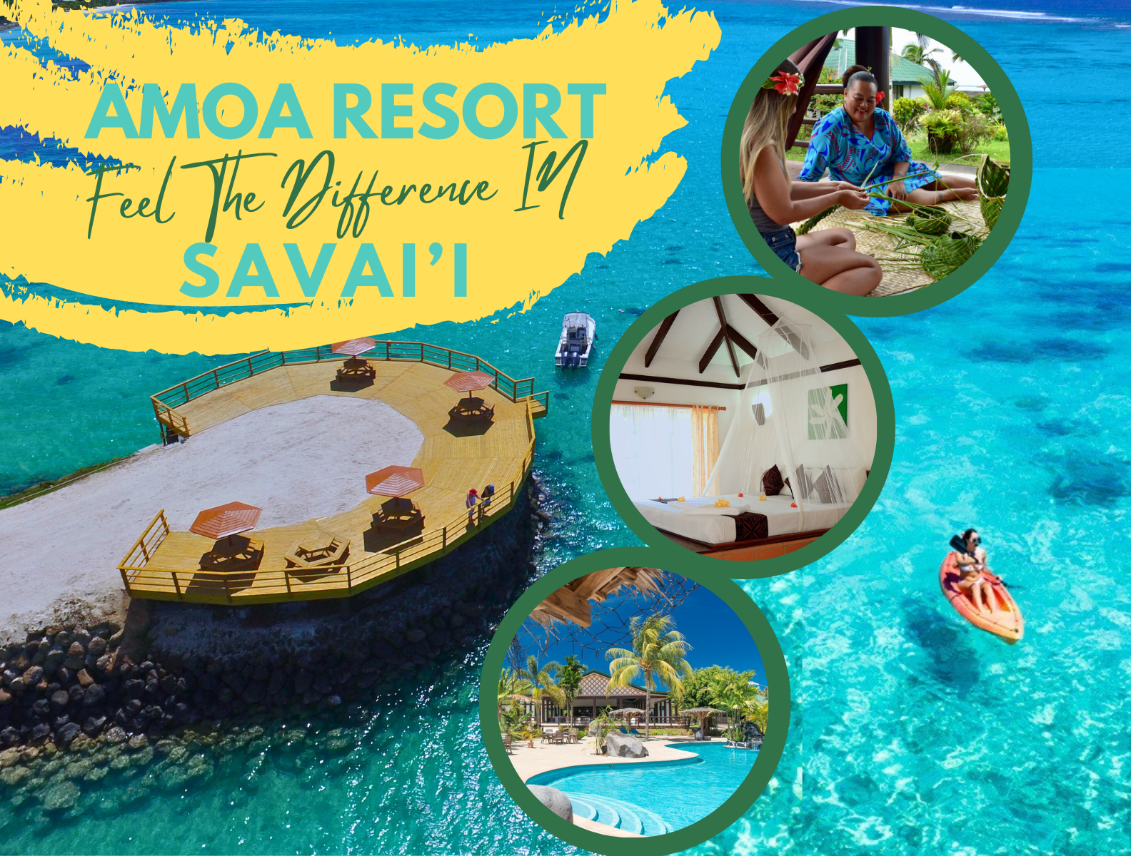 Set amidst exotic tropical gardens and fringed by the most magnificent blue lagoon is the beautiful Amoa Resort.  Discover 27 Polynesian inspired rooms and villas scattered over tropical gardens with brightly colored hibiscus blossoms, tropical flowers & swaying palms.  Savaii Island offers the quint essential paradise backdrop that will make you want to experience it more than once in your life time!